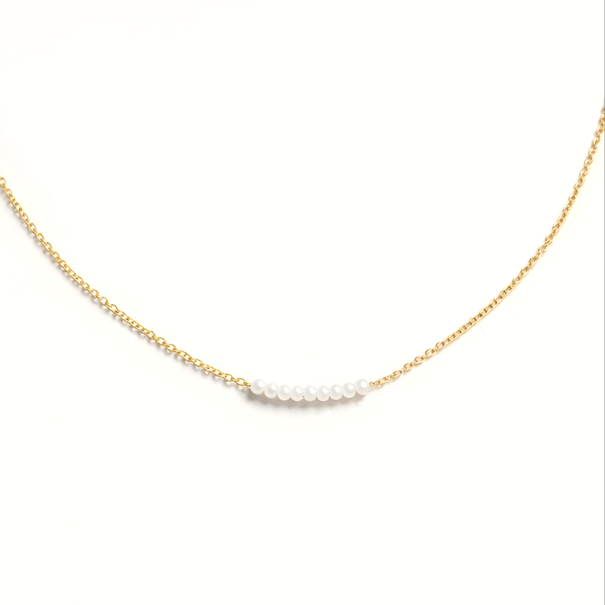 A delicate gold chain accented with pearls, designed to sit effortlessly alone or stacked.